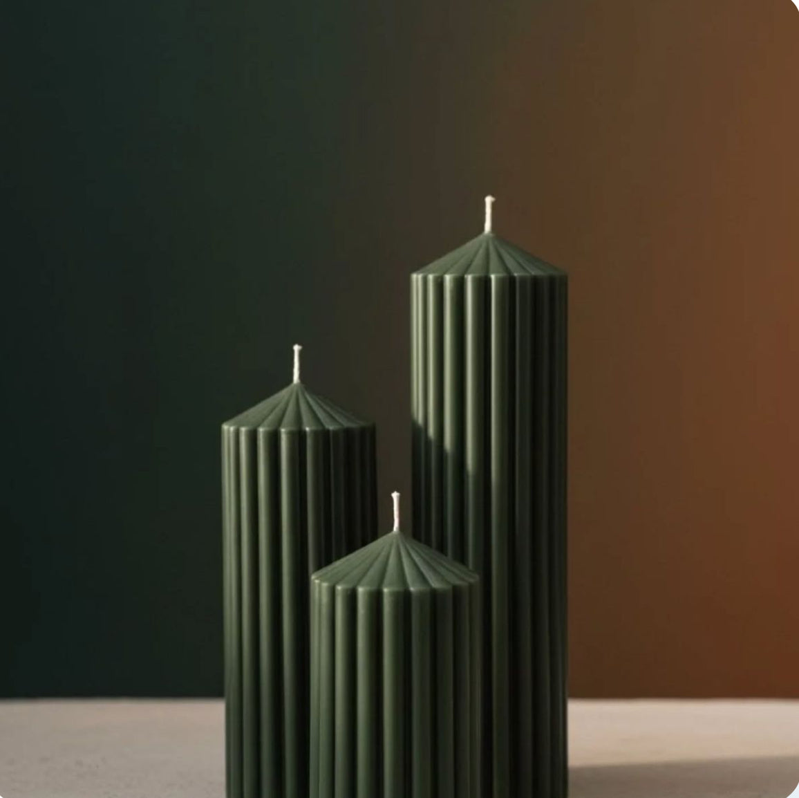 Elevate your home’s atmosphere with our signature Fluted Pillar Candles. Merging modern architectural design with the warmth of traditional candlelight, these pillars are more than just a light source—they are a statement piece for the conscious home.
